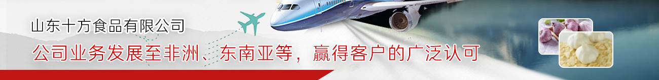 山东十方食品有限公司坐落于美丽的中国.山东省金乡县,是一家拥有自主进出口权的现代化综合农产品加工出口企业,主要经营出口:大蒜、黑蒜、蒜片、水果、洋葱、生姜、辣椒等各类产品,主要进口山竹、蛇皮果等东南亚水果。公司自成立以来,秉持“产品质量如生命,客户利益至上”的经营思想,凭借良好的信誉及开拓精神,业务发展至非洲、东南亚等多个国家,赢得国内外客户的广泛认可。